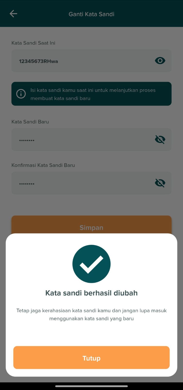 Klik tombol "Simpan" untuk menyimpan perubahan kata sandi.