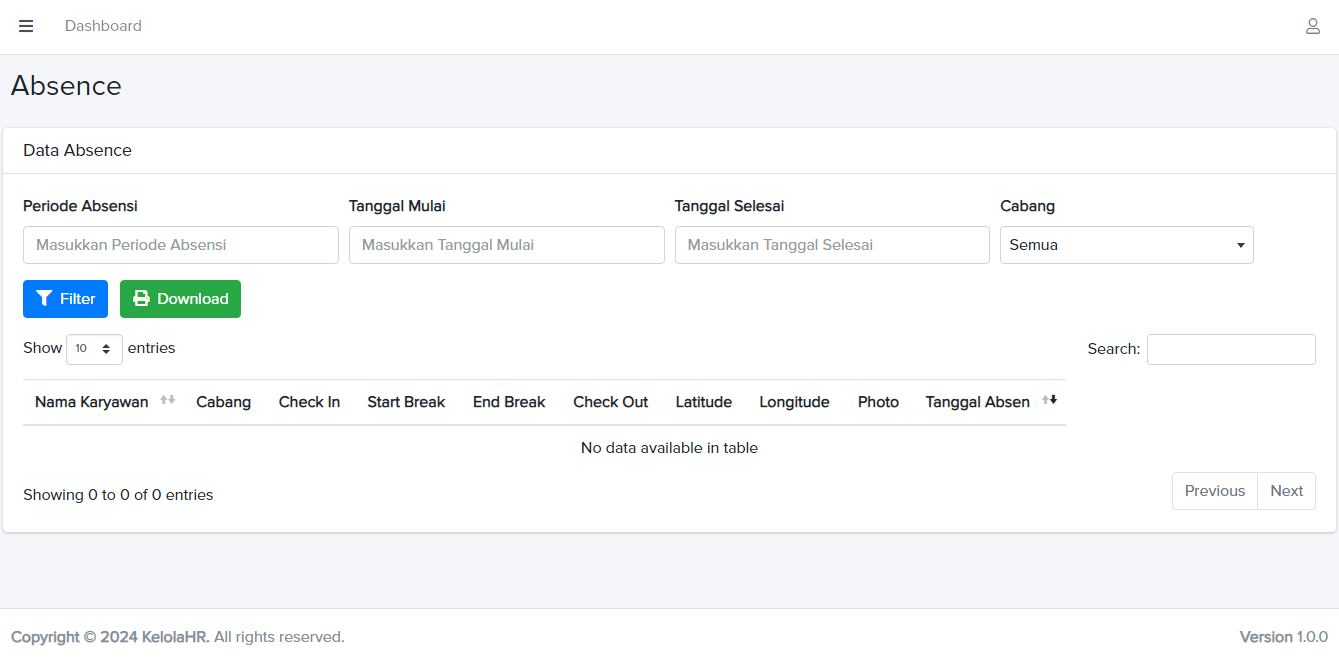 Sistem akan mengunduh data absensi berdasarkan filter yang telah Anda tentukan (periode, tanggal, dan cabang).