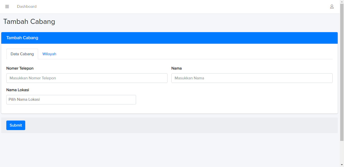 Tampilan Dashboard Cabang