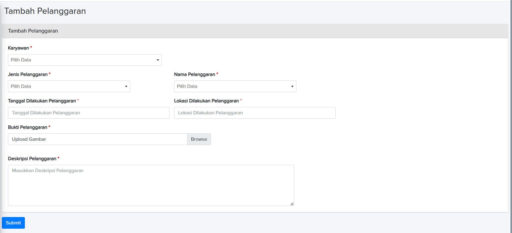 Form Tambah Pelanggaran
