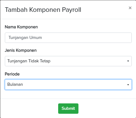 Pengelolaan komponen ini membantu memastikan hanya komponen relevan yang digunakan dalam proses perhitungan gaji setiap periode.